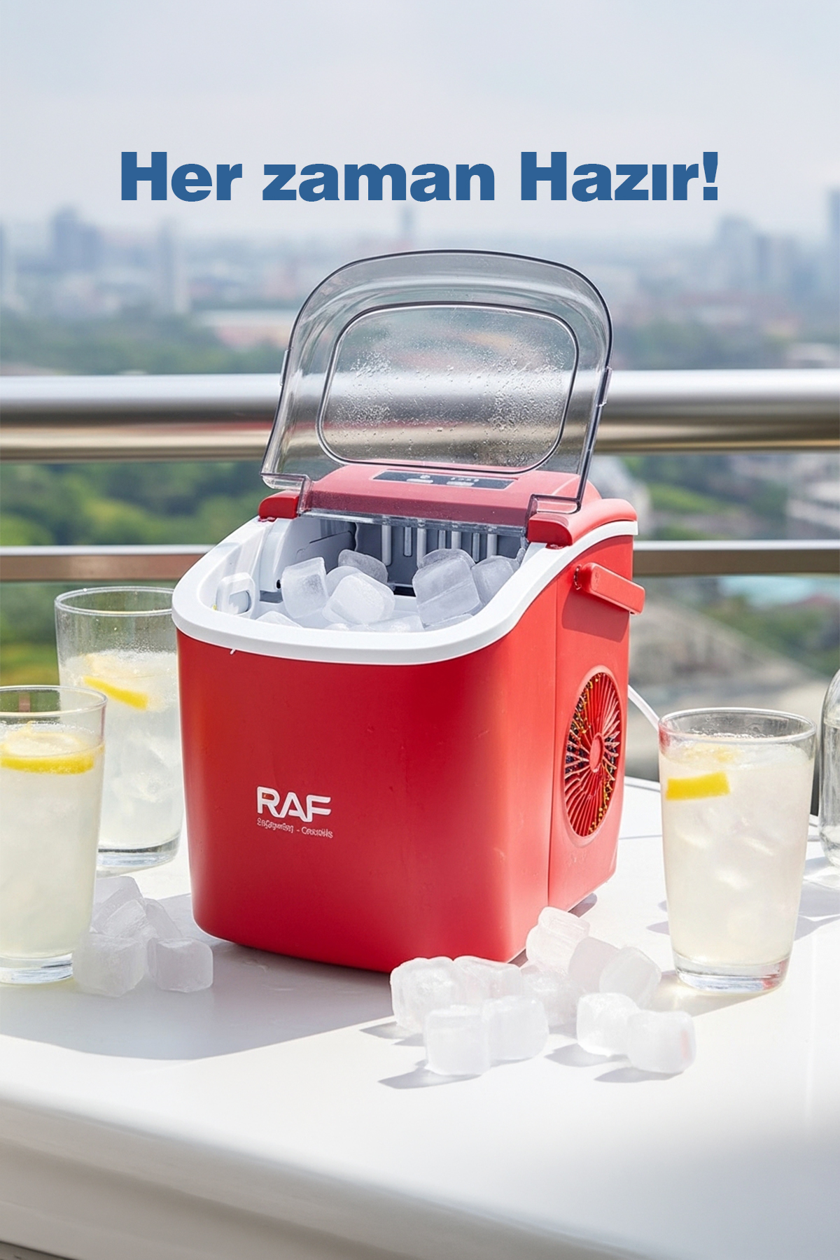 RAF Tezgâh Üstü Kırılmış Buz Makinesi, hızlı ve pratik buz ihtiyacı olan evler ve küçük işletmeler için tasarlanmıştır. Soğutma sistemi sayesinde kısa sürede buz üretimine başlar ve 24 saat içerisinde yaklaşık 12 kg buz üretim kapasitesine sahiptir.