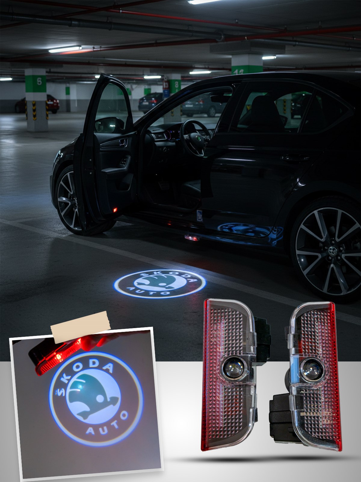 Skoda Superb’in makam aracı ağırlığını bu şık aksesuarla taçlandırın. Kapıyı açtığınız anda zeminde beliren logo, prestijin en net hali.